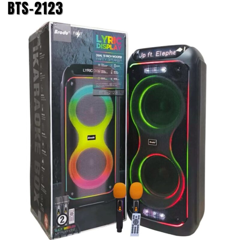 Brodu 2123 10Inch Woofer Lyrics Display Party Box Speaker with Dual Mic